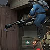 Description: Unmasked female BLU Pyro